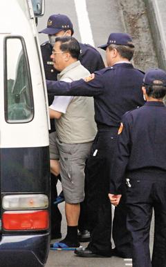 陈水扁在台北看守所的戒护下移监桃园龟山监狱。图片来源:台湾《联合晚报》
