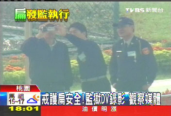报道称,为了陈水扁的安全,台北监狱立刻研拟如何防范。5日上午,台北监狱人员就在陈水扁会客必经的大道前东指西指,不时还蹲下查看测量。最后,发现有媒体就在对面,台北监狱人员直接拿出DV观察录像。