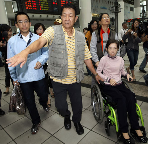 图为吴淑珍日前与儿子陈致中搭高铁到台北探视陈水扁。