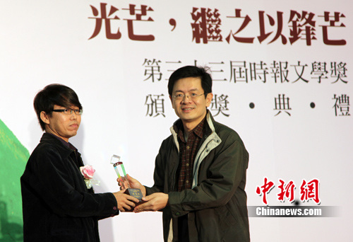 本届评审、著名诗人席慕蓉介绍诗歌组两位并列首奖:杨书轩的《桃花源·2010》写的是“舍不得自己的乡土被贪婪的人所改变”,许裕全的《FISTULA》写的是“舍不得母亲在洗肾时所受的折磨”,题材一大一小,都是书写人生的困扰。席慕蓉说:“人心中最狭隘的痛是最普世的。写作,就是寻求表达自我内心,给人生以力量。”