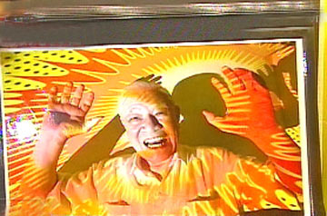 李登辉张开双手表现狮吼功。图片来源:台湾TVBS电视台