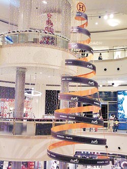 飞天彩带 台北市信义计画区百货公司内应景挂上圣诞树,让人感觉到1年真的快结束了。图片来源:台湾《中国时报》