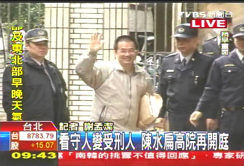 据台湾TVBS电视台报道,陈水扁因为龙潭购地弊案、陈敏薰人事案有罪定谳,“高院”定出17年6个月的合并执行刑,在2日发监服刑后,今天(21日)“高院”审理“机密外交案”,首度传唤阿扁到庭。