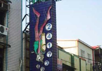 台湾一家潜水用品店的招牌,美女佩带着一整套潜水装备,正在深潜,嘴里还冒出了七个泡泡,泡泡内均有一个数字,这七个数字刚好就是店家的电话号码。图片来源:台湾“今日新闻网”