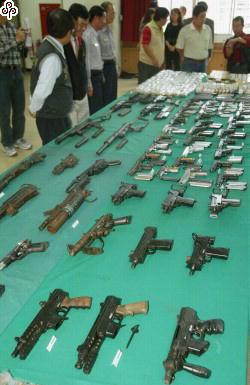 中国台湾网12月28日消息 据台湾《中国时报》报道,台中市一里长在选举中获胜连任,带领村民整理土地公庙时,居然挖出价值1500万(新台币,下同)的黑帮军火库,包括冲锋枪、M16步枪、手枪等长短枪33支,子弹4000多发。村民担心埋藏枪支的黑帮会找上门讨要,警方表示将会尽快破案。