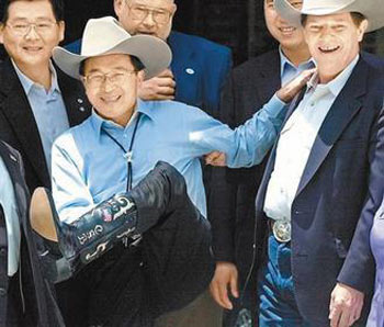 2001年6月,陈水扁过境休斯顿时十分风光,戴牛仔帽、穿牛仔靴、吃德州牛排,站在桌子上让媒体拍照。9年后,陈水扁沦为阶下囚,当年接待他的“德州之味”牛排馆最近悄悄撤下了挂在餐馆门口的陈水扁照片。