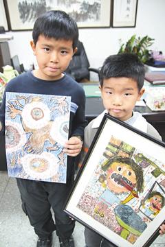 考量、考究兄弟,一个五年级,一个三年级,都有艺术天分,才学版画半年,双双拿下新竹市美术比赛第一。被推荐参加全台湾学生美展,考究获中年级组第一,考量入选佳作。
