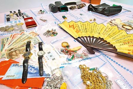 黄金生横行10年,家中起出金饰、钱币、名表等赃物。来源:台湾《中国时报》