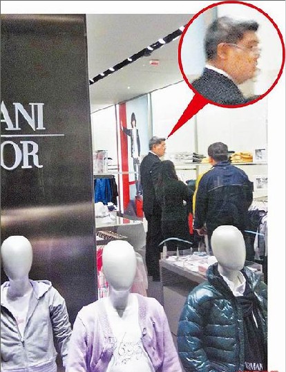 连胜文(中)前天傍晚被发现在香港中环选购Armani Junior名牌童装。图片来自网络