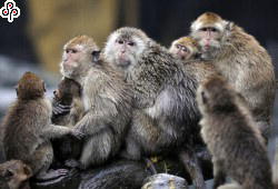 全台持续低温。台北木栅动物园里的马来猴,也全都聚集在一起相互取暖,抵御寒流。图片来源:台湾《中国时报》