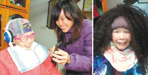 “奶奶,妳今天走的是嘻哈路线喔!”为逗奶奶开心,她常帮奶奶变装,戴假发、潮帽、粗框眼镜或墨镜,打扮成百变女郎,再用手机拍下来,拿给奶奶看,奶奶笑得合不拢嘴。