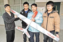 中国台湾网1月19日消息 据台湾《中国时报》报道,台湾远东科技大学3名大四学生耗时年余,仿效美国侦察机“全球之鹰”外型设计出摇控飞机。日前该飞机顺利起飞,并能完成低空侦搜影像拍摄任务。