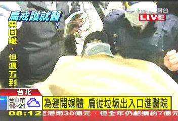 陈水扁上午从隔离通道进医院,因通道出入口放置垃圾,引发走“垃圾通道”争议,下午则被安排走侧门离开。桃园医院副院长徐锦池表示,隔离通道是提供感染病人、监所收容人使用,资源回收也使用同一出口,并非垃圾专用通道,没有礼遇或鄙视的意思。