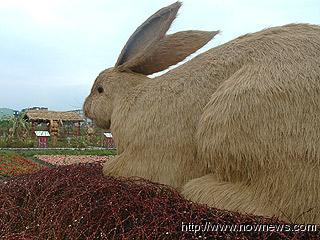 兔子毛茸茸的特征,以稻草表现得栩栩如生。图片来源:台湾“今日新闻网”