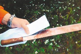 警方花了半小时,在公路边坡草丛找到凶刀。图片来源:台湾《联合报》