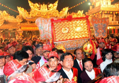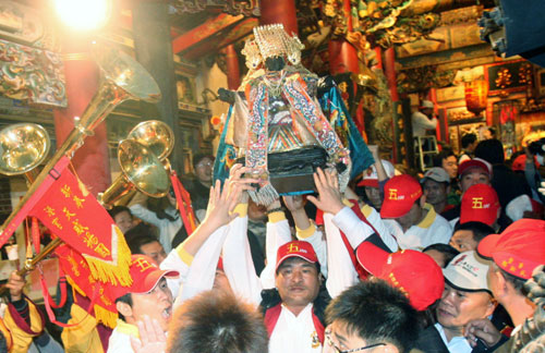 新港奉天宫开台妈祖于9日晚上6时起驾,展开为期9天8夜的绕境,将走过13乡镇、100间庙宇为嘉南平原这块土地祈福;“立法院长”王金平、嘉义县长张花冠、嘉义市长黄敏惠、国民党籍“立委”翁重钧、民进党籍“立委”陈明文等人皆到场徒步扶轿。