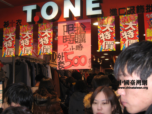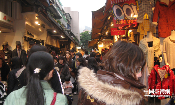 中国台湾网2月11日台北消息 位在台北市信义区的五分埔,是台湾知名度最高的服饰集散中心,也是台北人购置时尚、便宜衣物的首选之地。新春期间,人人希望“穿新衣、戴新帽”,这里自然是人潮汹涌、买气不绝了。