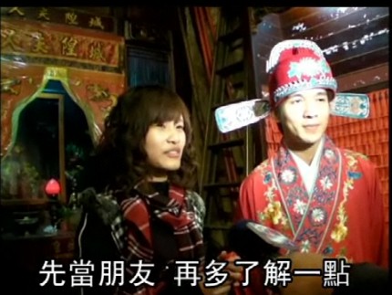 中国台湾网2月14日消息 据台湾媒体报道,彰化县鹿港城隍庙昨天举办一场别开生面“男丁抛绣球找女情人”活动。男主角潘冠志抛出的绣球,被台下一名17岁高二女生叶愉萍接到。叶愉萍上台后,面对主持人艺人蔡闰询问后说:“愿意交往试看看!”,立即获得台下民众热烈的掌声和祝福。
