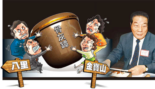 据台湾《苹果日报》报道,岛内爆发豪门争母骨灰官司,台湾前首富霖园集团创办人蔡万霖的二姐蔡玉兰死后一年,两个儿子不满两姐妹只顾争产,竟一直将母亲骨灰寄放国泰医院迟未入土,因而私自把母亲骨灰送往八里墓园和父亲骨灰合葬,事后两姐妹提告要求两兄弟返还骨灰,台湾高等法院日前判兄弟俩败诉,须依当初四名子女协议将母亲骨灰迁葬金宝山墓园。