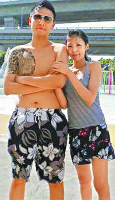 竹联帮平堂松山会帮众多有健美体态。图为帮众罗慧勇与其妻合影。来源:台湾媒体