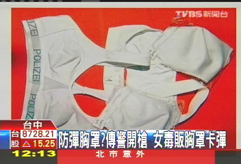 中国台湾网2月17日消息 综合台湾媒体报道,台湾警史上又添离奇案例!台中市警方日前缉捕一对毒枭,女毒枭驾车企图突围,警员连开10多枪制止,其中1颗弹头射入车内,弹跳多次后,竟击中女毒虫胸罩,再掉进“事业线”,轻微灼伤她的胸部,但女毒枭本人却安然无恙。一名资深刑警笑称,他做警察已快20年,这种情况还是头一遭遇上。