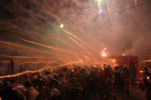 组图:台盐水蜂炮施放高潮 游客体验“犁蜂炮”快感