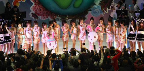 2011台北国际电玩展18日在台北世贸一馆登场,除了新款各式电玩软件外,最夯的就是展场Show Girl,只要一出场,摊位马上挤满人潮。 图片来源:“中央社”
