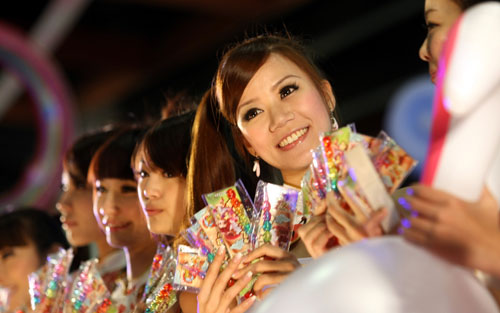 台展场美女拥有亮丽明星脸 带动业绩两三成