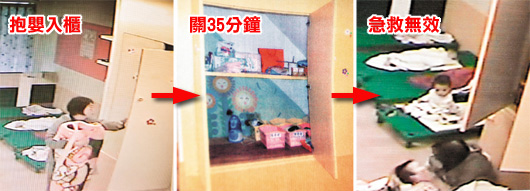 保母张翊玟疑因郑姓女婴哭闹,将她关在置物柜35分钟,发现女婴没有气息时赶紧急救,但已无法挽回性命。(图片来源:台湾《联合报》)