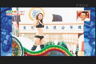 日本电视台播出蔡瑞拱父亲的丧礼,出现清凉歌舞秀,现场来宾(图右上)露出不可思议的表情。 图片来源:台湾《联合报》