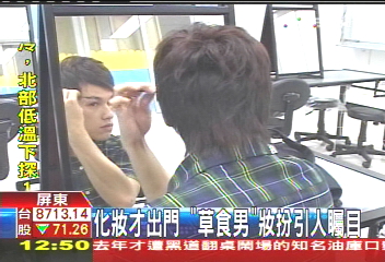 报道称,“草食男”在日本曾经一度风靡,如今这股潮流来到了台湾,并且席卷一群大约读7年级的男生。男生化妆,挑战了过去权威传统,或许很多人还无法接受,但不管怎样,它已经悄悄成为一股潮流。(中国台湾网 冯存健)