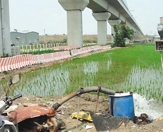 高铁云林沿线桥下有农民抽水灌溉农田,疑为造成地层下陷原因。