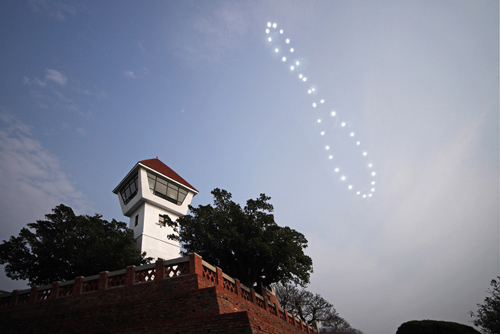 周银王解释,“日行迹”就是从地球往宇宙观看,太阳一年中在天空里所行走的路径,所以只要在固定时间、方位、仰角拍摄记录太阳一年,就能记录出太阳一年里行走了一个“8”字型的路径。若是早上或傍晚低仰角时拍摄太阳,会是平躺的“8”字,中午时分拍摄,就是直立的“8”字。(中国台湾网 冯江)
