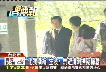 今年清明节,马英九没有选择这天给父亲马鹤凌上香,其父安葬的富德公墓只见马英九母亲秦厚修出现。由于日前民进党主席蔡英文,重提马鹤凌的骨灰坛刻着“化独渐统”,使得马英九父亲的政治认同又受到瞩目,不过台湾“总统府”对此解释称,“马英九只是不想扰民,会另外择日扫墓”。