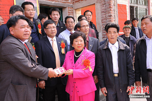 3月6日,孙中山孙女孙穗芳博士一行来到广东和平县为和平中学与林寨镇严村孙屋两座孙中山铜像落成举行隆重的揭幕仪式。在林寨严村孙屋孙中山铜像揭幕现场,孙穗芳博士还捐赠一万元人民币支持该村建造中山纪念堂。刘小杭 摄