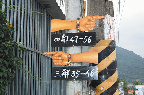 据台湾联合报报道,台东金峰乡宾茂村街道错综复杂,为方便到访游客寻路,结合地方采风设计“手指”指示牌,戴着琉璃珠的手臂,清楚地让访客辨识各街巷,也融合了当地排湾族的传统,意外成为在地特色。