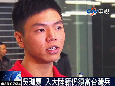资料图:吴珈庆虽入大陆籍,但依照台湾方面的相关规定,他仍须回台面对“兵役问题”。