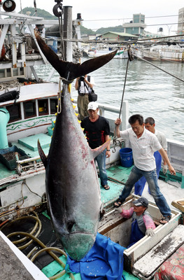 每年4到7月是宜兰县黑鲔鱼鱼汛期,黑鲔鱼营养价值高、肉质鲜美,一向让喜爱海鲜的人趋之若鹜。南方澳渔港过去一直是台湾黑鲔鱼主要产地之一,素有“北苏澳、南东港”之称。(中国台湾网 冯存健)