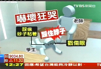 中国台湾网5月11日消息 据台湾TVBS电视台报道,高雄市一所小学,传出舞蹈班学生嬉戏惹怒老师,小学6年级男生笑趴在地上,这名老师气得用脚踩住他的脖子1分钟,该举动吓坏班上15人。