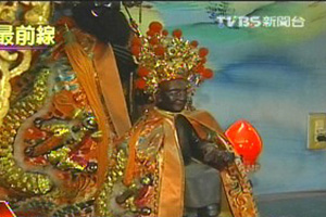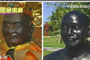 中国台湾网5月16日消息 据台湾TVBS电视台报道,蒋介石成了供人膜拜的“神仙”。台中市一庙堂有座蒋介石铜像,被戴上神明帽、穿上锦袍,以神明造型坐在神桌上,每天接受民众的膜拜。以前大部分参拜民众都不知道这座“神像”是蒋介石,现了解情况后觉得很有趣,表示不知道能向蒋介石“神像”求什么。庙方人员介绍说,大约20年前,庙内突然出现这座蒋介石铜像,怀疑可能是台军拿来的,所以没有丢掉,就一直摆着,直到两年前才帮其穿上“神袍”。(中国台湾网 吴斌)
