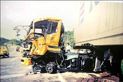 徐名峰驾驶的大货车,从车祸现场可看出车毁严重程度。图片来源:台湾媒体