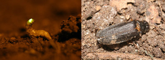 雌虫一天只“开灯”1小时求偶,逾时就关灯睡觉。左图为雌虫,将腹部举起发光;右图为雄虫,白天躲于土表中。图片来源:台湾“今日新闻网”