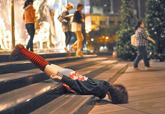 仆街少女的“怪异”行为艺术。图片来源:台湾“今日新闻网”