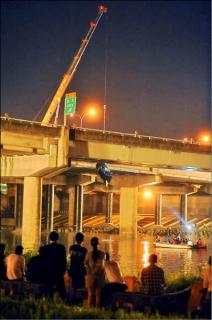 中国台湾网6月1日消息 据台湾媒体报道,台北中山高汐五高架桥的堤顶交流道口,31日晚发生离奇车祸,妇人陈玉英开车通过时,突遭后车冲撞,直接坠落到桥下的基隆河。目前陈妇已失踪,警方正在全力搜救中。