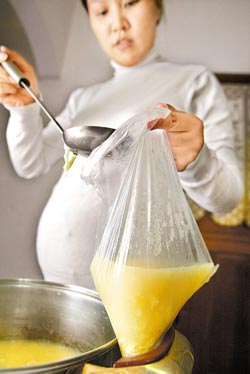 台湾孕妇体内塑化剂是美国人的10倍以上,可能残害婴儿,用塑料袋装热食会受塑化剂污染。图片来源:台湾《中国时报》