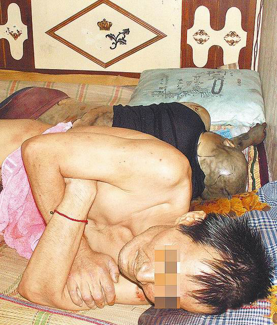 前天中午,警方获报到嘉义县六脚乡一间三合院内,发现一名裸男意识不清地与一具女尸躺在床上,现场奇臭无比,赶紧将男子送医。检警勘验发现现场遗有粪便、无药瓶,有烧剩灰烬,死者头发掉落一地,右眼浮肿、左耳撕裂伤,尸体浮肿发黑,推测死亡时间3到4天。