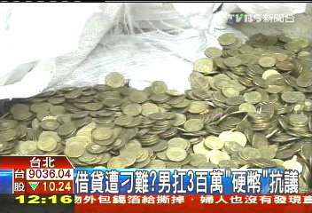 中国台湾网6月7日消息 据台湾TVBS电视台报道,新北市一名邱姓商人向银行借贷316万(新台币,下同),银行要其提供1200万的财力证明。邱姓商人认为银行刻意刁难,称如果有千万财产就不会去借钱。今天(7日)上午,邱姓商人带着足有10万枚、价值316万元的硬币,到银行还保证金以示抗议。