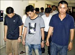 苏某(最后排)带大批帮众去讨债,统统被警方逮捕。图片来源:台湾媒体