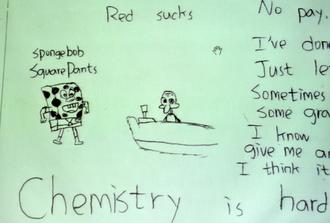 台湾大考中心昨天举行指考考生违规会议,考生在答卷画上海绵宝宝的图案。图片来源:台湾《联合报》