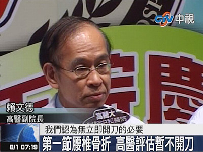 高医表示,陈菊状况稳定、血压稍高,腰脊受伤时,身体一翻动,会导致剧痛,预计陈菊住院卧床休息1至2星期,让伤口自行愈合,出院返家休养时,需戴铁背架护腰,约3个月后才能取下,未来不会影响行动,但是否不利运动则待评估。(中国台湾网 冯江)